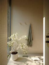 The interior palette takes inspiration from the natural earth tones of the site: The stain to the timber rafters echoes the surrounding trees; the soft gray tone of the kitchen island has been matched to the bark on the piñon pines; and the walls are a snowy white contrasted with deep bronze window frames. “It’s a neutral palette that welcomes the textures, weaves, and claywork of local artisans,” explains Moore.