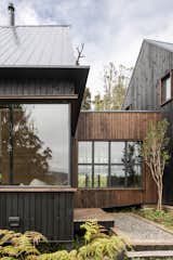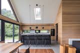 Vintage Modus chairs by Kristian Solmer Vedel for Søren Willadsen Møbelfabrik sit at one end of the library in Wook’s studio. “For me, reading books is almost my entire daily routine,” says the architect. The building, which is divided into sections, also contains a workroom for Jinnie and a guest room. “The main thing was that the houses in this neighborhood were very small, so l thought it would be good if this building had a slightly divided structure,” says Wook. “When you enter inside, it’s one space, but the form ended up being a house with several different roof shapes.”