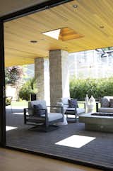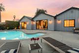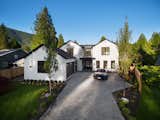 Rear exterior | Vertical burnt wood siding mixed with stucco. Black window frames and metal railings.