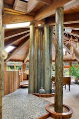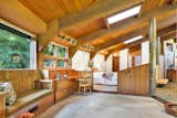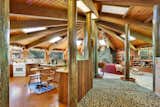 Nestled in the hills of the Smoky Mountains and oriented to prioritize views of the Appalachian Trail, this prefab cabin is constructed out of three shipping containers topped with a generous, double-sided overhang that creates two porches. The upper-level shipping container is available for vacation rentals on Airbnb.