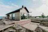 Inside, wood floors, walls, and ceilings along with wood-framed windows and doors nod to the region's history of timber construction. In the main living area, a daybed by Peca is complemented by side chairs from Carl Hansen and a coffee table from Black Creek Mercantile.