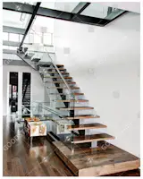 Tread: 8+8 laminated glass; Stringer: 150*150 carbon steel; Handrail:50*50 timber