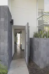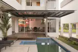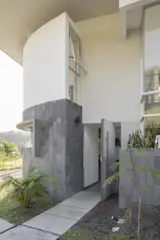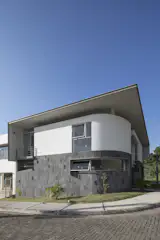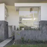 We were interested in simulating the typology of the surrounding constructions by using common elements such as articulated roofs, natural Stone covered walls, windows that can be operated, large overhangs, natural textures and light colors; But trying to create a new composition, with slightly abstract volumes, where shadows, textures and different depths contribute to compose a new tropical atmosphere.