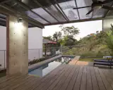 The house plan was designed in a narrow L shape with an average width of four meters in all of its length. This scheme allowed us to ventilate and illuminate naturally every room in the house. The interior faces, were the social areas and terraces are located, get the most of the northern light and great views to the mountain forest reserve, which is brought in through the patio and pool, diluting the division between interior and exterior.
