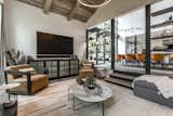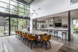 The apartment in the heart of São Paulo, Brazil, that FJ55 Arquitetos renovated for Carolina Quevedo and Marcus Watari was once a podcast studio. The space's wide open living area, kitchen, and dining space are outfitted with Tauari wood floors and feature raw concrete ceilings, beams, and pillars.