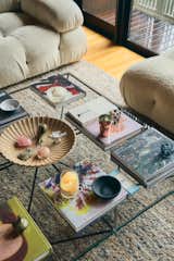 A Ptolomeo vertical bookcase by Bruno Rainaldi stands outside the couple’s bedroom, which features a John-John bed from Poltrona Frau and Awa side tables from B&B Italia. The tatami mats are original to the house, which was designed in 2002 by architect Mikio Tai, who worked with George and Mika on updates.