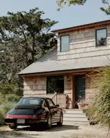 Each volume—a workshop, one for the primary suite, another for the living space, and a screened porch—is 12 feet wide, a limitation set by the site and by what was possible to bring over by boat.