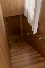 The designers relied heavily on the use of reforestation wood, which is used throughout the interior along with glass and concrete.