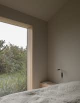 Aside from the natural light, the master bedroom is illuminated simply with a graphic Mobile Chandelier No.2 from Michael Anastassiades and a Bellhop table lamp from Flos. These accompany a Cove bed from Design Within Reach, a Harlosh bedside table from Pinch Design, a Colonial armchair from Carl Hansen & Søn, and a rug from Calvin Klein Home.