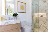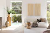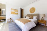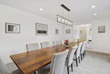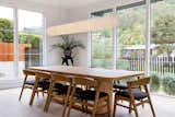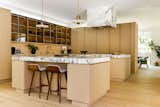 The expanded kitchen has a large central island, with room for prep, seating, storage, and cooking. The cabinetry is a mix of wood, Shinnoki Milk Oak, and white fronts, Fenix NTM Bianco Kos. The terrazzo counters are by Concrete Collaborative. There are two types of tiles: the Mutina Rombini fluted tile on the island and Cepac Krave Sugar Tiles on the backsplash. “It looks very mid-century modern,” says Blaine of the backsplash tile. “But in this application, it also adds that little touch of depth that I think is really important to making the house feel interesting.” The counter stools are from Hay.