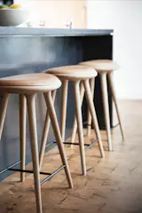 For the kitchen, Tyler hired David Restorick, a furniture maker and friend, to build an island for storage and to wrap Ikea cabinets with oak for a customized look. He also built a staircase that doubles as display space for Tyler’s vast collection of colorful cookware by the likes of Finel, Copco, Cathrineholm, Jens Quistgaard, and Stig Lindberg.