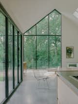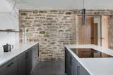 The homeowners loved the idea of bringing in warmth with wood details, so the team added a feature wall of clear cedar to anchor the utilitarian space. Hammer and Hand beautifully wrapped the pantry door in the same cedar for a uniform look. “They're such great craftspeople,” says Boyer of the contractor.