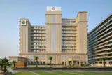 visualized by horizontal lines onto interior walls which are being followed in from the exterior façade. Another restaurant cum bar accentuating design full flegedly is “Bitters” which comes with quirky yet elegant interiors. The amalgamation of colours including brown and hues of orange define this space. The ambience is hoisted by eclectic mix of illumination which plays a major role in uplifting the spirit of the space. Banquet spaces too are brought to life with red, black and beige in sync with minimalism creating exquisiteness. Moving beyond banquets to upper level, one reaches to 195 spacious suites, consisting of studio, standard, deluxe and crest suites spread across various levels. The studio suite has an area of 255 Sq. ft. comprising of twin beds, as well as a separate workstation and an independent balcony, which lends a breezy extension to the room and allows for an abundance of natural light. Standard suite is spread across 385 Sq. ft. consisting of a spacious bedroom with a separate workstation, living area along with a pantry. An independent balcony comes as a surprise opening towards sky and open grounds surrounding the area, which lends a wider extension to the room. Deluxe suite has an area of 515 Sq. ft. incorporating an exquisite bedroom, an independent balcony attaching living area to bedroom added as a highlight and a wider living room capable to accommodate more people. Crest suite is spread across a hefty area of 1340 Sq. ft. which is synonymous with modern luxury, comprising of an expansive bedroom, a gorgeously designed dressing area, a study, and an opulent bathroom. This high end luxury suite exudes a sense of understated luxury, comfort and style, complemented by state-of-the-art technology and efficient services.