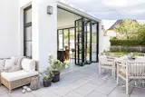 Architectural minimalism at its best. cero® by NanaWall offers minimally framed panels in larger sizes as exhibited by this perfectly illuminated open concept living area. The once traditional home was transformed into a modern haven with a floor-to-ceiling sliding glass wall that seamlessly blends the serene environment of an outdoor seating area with the interior living space—the perfect space to entertain guests or enjoy a quiet afternoon.