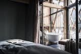 Inside the house, the distribution of spaces and functions is really unusual. The ‘boxes’ which house the three bedrooms are supported by the wooden beam structure, visible in its totality (12 metres high). The bedrooms are designed as micro-homes, each one having its own particular design, these boxes seem to almost ‘hang’ in the ample volume of the interior (1,100 cubic metres). One gains access via a staircase and a walkway system, which as well as having a connecting function, accommodate the ‘bathroom’ areas with tubs and showers (only the WC are closed in). On the last floor, a box plays host to the sauna with a panoramic view, extending out of the southern front. Preceding the sauna, there is a book-lounge with an antique majolica stove, which has been taken from the pre-existing building. The library together with a cloakroom area complete the private spaces on the higher levels.