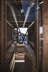 On the ground floor there is a common area which spreads out almost in a ‘piazza’ fashion for (habitational)and interactional use: there is a dining table to enjoy with friends, an ample sized kitchen to accommodate more than one cook! The rest of the house develops in a vertical way and instead of the classical room division there are what can be described as ‘hanging boxes’, which are positioned at different heights and interconnected by stairs and walkways - they giving the sensation of walking up a mountain path towards the peak. The hallways are carefully designed so that, apart from their connecting function, they accommodate other essential areas such as the library and open ‘bathroom’ areas with tubs and showers (only the WC are closed in). The entire structure is conceived in a way that the further one goes up the level of privacy and intimacy is heightened. The highest ‘box’ which features a sauna opens out to the splendid view of the Santner mountain.