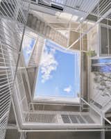 The facade is defined by a series of 12-foot-tall metal louvered doors.