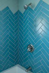 After: A slatted white oak screen maintains the spirit of Mid-Century while also helping to cloister the front door, providing sense of entry. Bright terrazzo flooring, again a nod toward the home’s original era, leads to the opened kitchen space (right) and refinished stair.