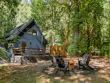 The living room opens to a terrace made of four slabs of black concrete separated by rows of woolly thyme. A fire pit designed by Jørgensen’s firm and Adirondack chairs from Erin Martin Design provide an ideal setting for taking in the scenery, especially at night. “Strangely, the view here really didn’t change a lot,” says Buttons. “The fire came up behind us, jumped around, and spared a lot of the surroundings. I can’t imagine finding another place like it.”