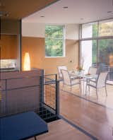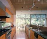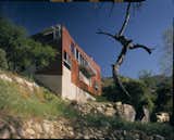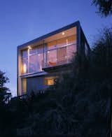 The clients did not want a hillside bunker, but the new house needed to provide the (sense of) security its environment challenges. In addition to automatic fire sprinklers and fire-resistant exterior finishes, The house sports a bit of an attitude towards its not so friendly environment. The house’s cantilevers assert an aloof relationship to the ground; the crank of the plan provides a posture that is alert and anxious; the slope of the roof and the skirt give it presence; and its color lets there be no doubt as to its confidence.
