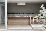 Using concrete for the home's basic structure inspired the team to continue the theme inside with exposed concrete brick walls, floors, and benchtops. The resulting restrained palette creates a soothing backdrop for this sustainably-minded residence.