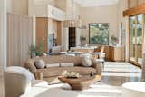 This shows how the walnut “Flatiron” sculpture separates the rooms, but still allows for connectivity thanks to its triangular shape. “The client wanted a very open and loft-like feel, but also a degree of separation between the kitchen and the other rooms,” says Morbitzer. “There’s a balance between openness and privacy.”