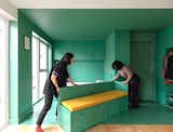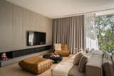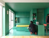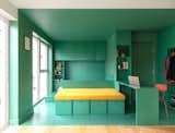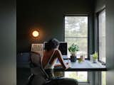 Woud’s modular sofa provides a vibrant accent color used elsewhere in the house and ADU. The striped club chair is from Ferm Living; the Eames chair and ottoman were among the only things the couple brought with them from Colorado. The knot cushions are by Design House Stockholm, and the prints are by Cornelia Thomsen.