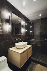 Architect Ravi Raj inverted the home’s former layout, placing the main living areas in a double- height great room on the upper floor, where the master bedroom had been. In the kitchen, the Grigio Trambiserra marble is from ABC Stone, the cabinets are Surface by Norm Architects for Reform, and the cooktop and oven are by Fisher & Paykel.