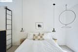A black-and-white motif is warmed by wood furnishings in the master bedroom of Claire Benoist and Derek Kilner’s weekend retreat in Somers, New York. A Shaker stove by Wittus faces a vintage Pierre Chapo table. The windows are by Pella and the fireplace tool set is from Terrain. An Akari ball pendant by Isamu Noguchi hangs overhead.