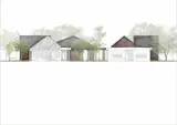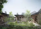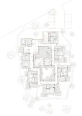 The house consists of a series of small houses combined with an internal passage that encloses a courtyard. The family house offers both private living spaces and communal areas such as a kitchen and living rooms. Nature contributes on a large scale to the concept of healing architecture and plays an extensive role in the design of the house. Nature is embraced through the surrounding landscape and the interior courtyard. The courtyard offers spaces designed to host both playful and more secluded outdoor areas. The passage connecting the houses creates seating spaces and niches, inviting people to meet each other on various formal and informal levels. The passage extends in selected places to create the common kitchen and living rooms.