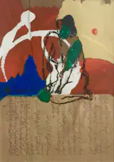 The complete series consists of 13 unique pieces (framed) created using a range of materials and techniques that include, Ancient Ottoman papers with Arabic calligraphy, butcher paper, charcoal sketches and acrylic paint application.