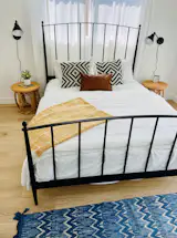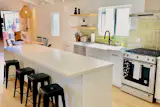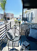 This brand-new upper unit has space to spare! The large kitchen has a 10-foot island and an eat-in dining area to provide an opportunity to share a meal with friends and family. An open living space has a sectional couch, fireplace, reading nook, and deck with views of the ocean, while the primary bedroom has a king bed and attached bathroom with a double vanity. The second bedroom has a queen bed and the third bedroom has two singles. This unit comes with a washer and dryer inside the property, access to an outdoor shower, and a parking space.