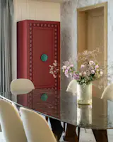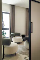 The design team took this brief and translated it into a concept where color was incorporated subtly and thoughtfully, primarily through the furniture, while the walls and flooring were kept neutral to allow the vibrant furnishings to stand out. Every room in Alcove has its own unique touch of color, seamlessly integrated into the furniture, ensuring a lively atmosphere that remains easy to maintain. In keeping with the client’s wishes, the overall aesthetic avoids bold and overbearing palettes, relying instead on pops of color that elevate the visual appeal of the home. By balancing the neutral backgrounds with carefully curated, colorful furniture pieces, the design avoids clutter while adding depth and character to every corner of the house.
