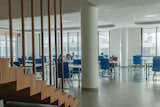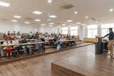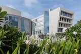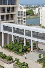 Sustainability is ensured through various design interventions. The integration of solar panels and building-integrated photovoltaic systems, low-e glass, heat-resistant tiles, and movable sun-protective fins enhance energy efficiency. Recycled water usage, rainwater harvesting, and efficient irrigation systems reduce water consumption. Plumbing fixtures minimize wastage, daylight sensors optimize lighting, and openable windows enhance ventilation. Facade sun-shading and roof gardens further contribute to energy efficiency and comfort. Materials were carefully selected based on their sustainability and recyclability, reflecting a commitment to minimizing the project's environmental footprint. This includes green concrete, fly-ash lightweight insulated blocks, and natural stone flooring. The campus massing follows a passive design strategy, and is scaled down to minimize visual impact and blend harmoniously with the surrounding environment.