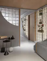 Ferrocrete, typically hidden beneath finishes, is left exposed and molded into fluid shapes, walls transition into shelves, partitions appear to grow organically from the floor, and corners are rounded instead of sharp. Epoxy flooring continues this gesture, its soft sheen unifying the space in a continuous sweep. The environment feels sculptural rather than assembled, with character emerging from the structure itself rather than surface embellishment.